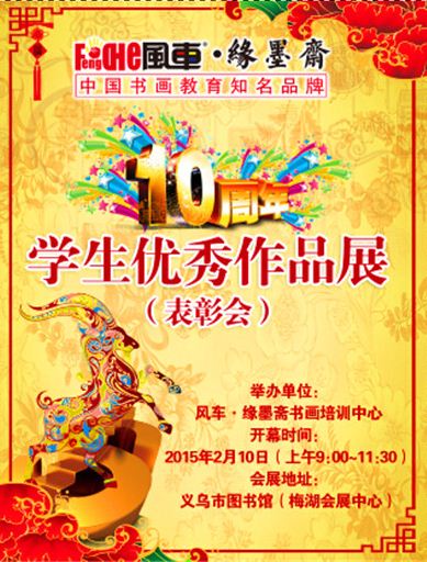 风车。缘墨斋书画培训中心将在义乌市图书馆举办盛大迎新春学生优秀作品展,届时,缘墨斋书画还将举行一场大型的表彰会,一定要来领取你们的奖状哦!同时,现场我们还有免费的手工制作灯笼的亲子活动和免费写春联活动,欢迎带上您的朋友及家人一起来参加!